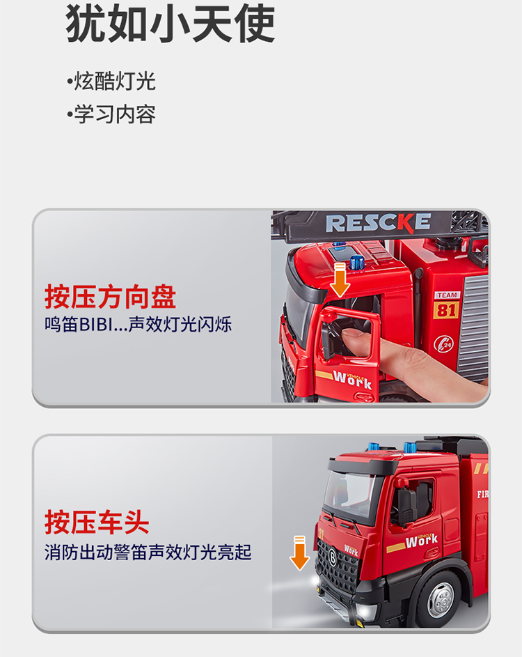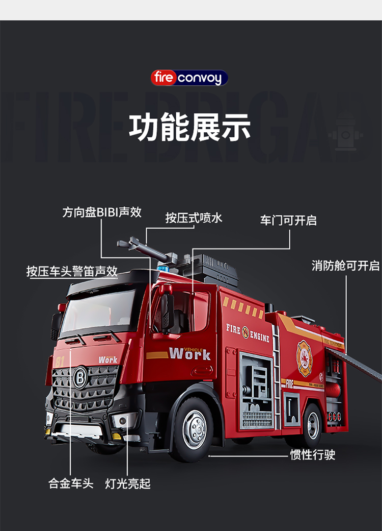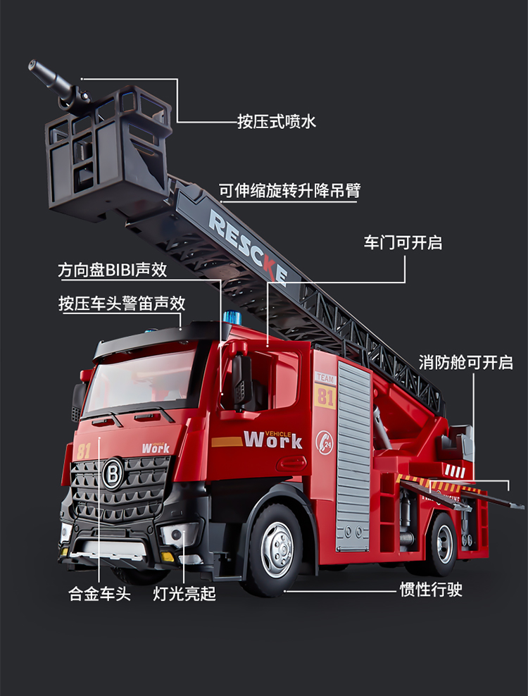 Oversized Kids Fire Truck Toy Boy Model Car Alloy Artificial Water Spray Aerial Ladder Truck Rescue Aid Car